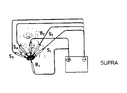 - Apply battery voltage to terminal "B1" and terminal "B2" while repeatedly grounding terminals "S1", "S2", "S", "S4" and "S1" in sequence to cause valve to close. See Fig 1.