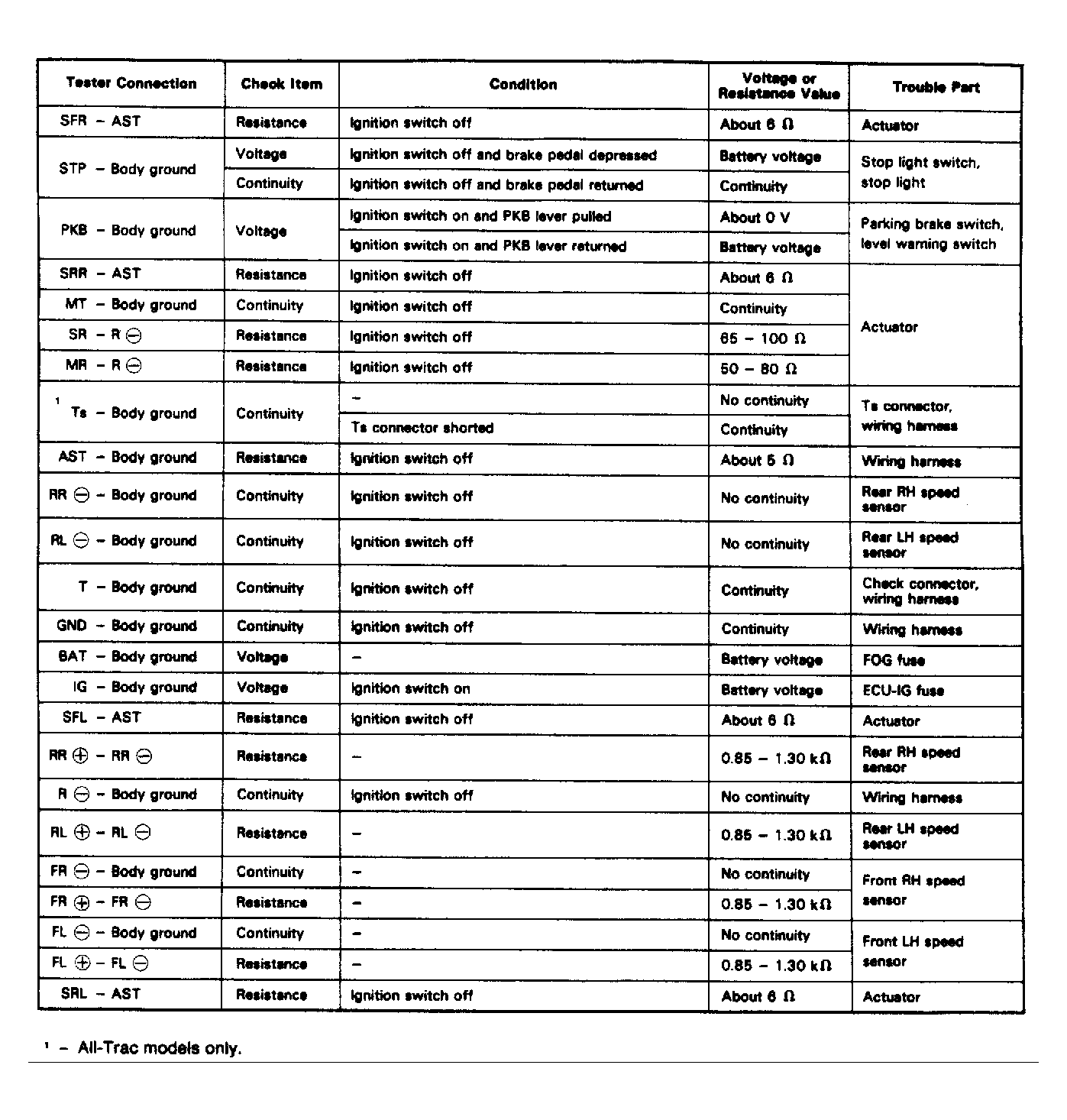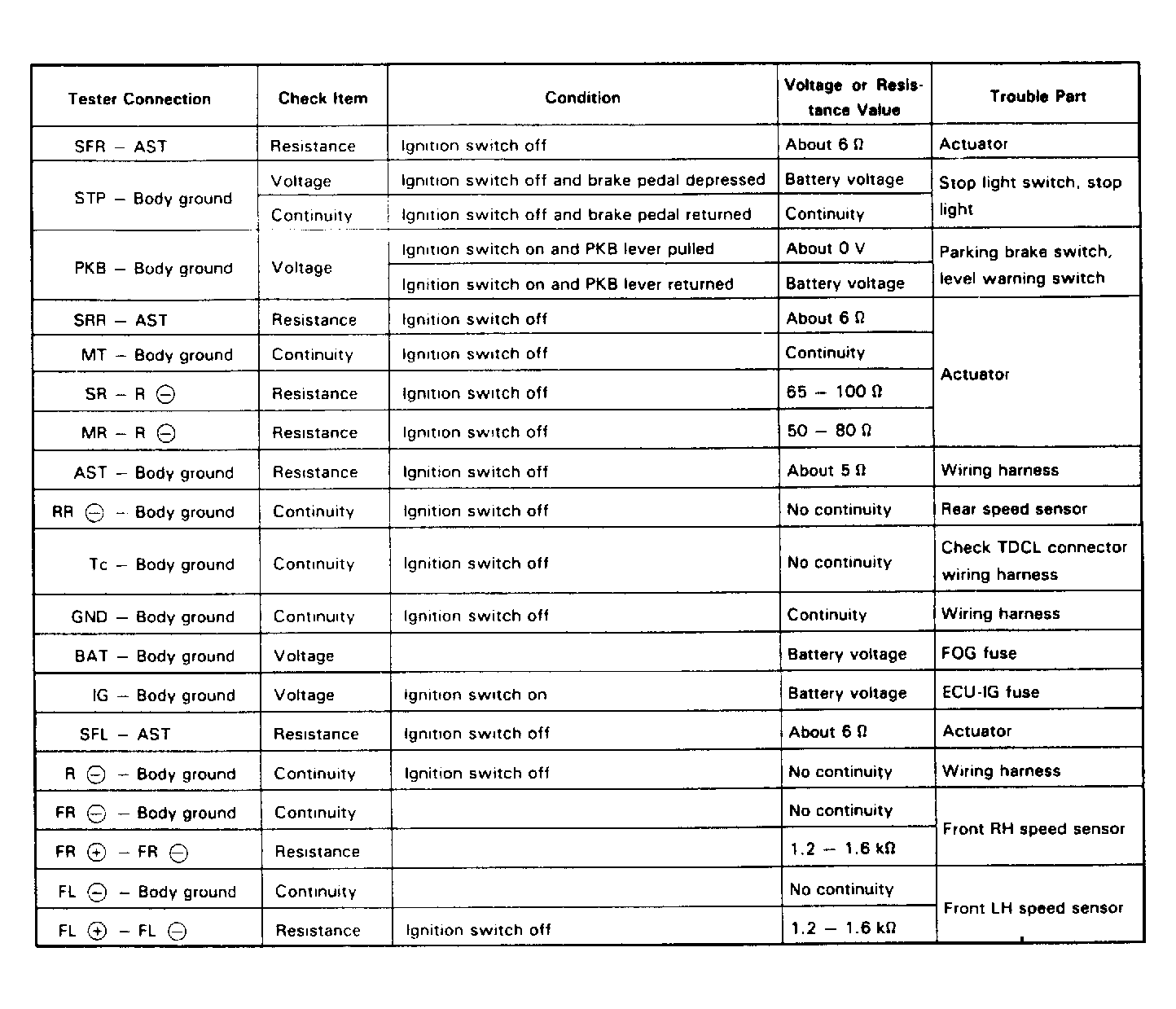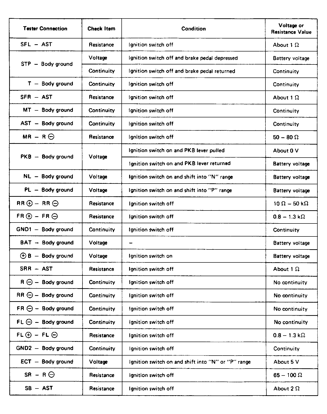 Check for readings by back-probing connectors at ABS computer with computer disconnected from system. See Fig 1, Fig 2 or Fig 3 .