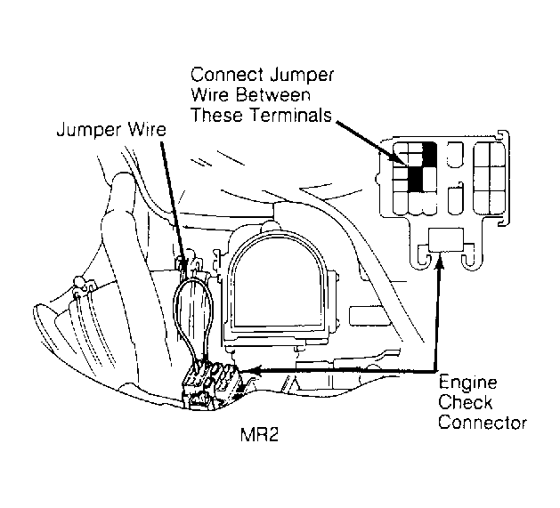 Fig 1: Entering Diagnostic Mode at Engine Check Connector (MR2)