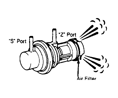 2. Apply air pressure at port "Z". Air should escape through air filter. Replace valve assembly if defective.