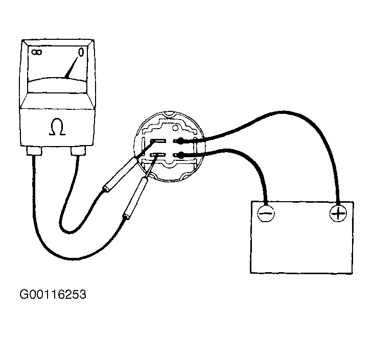 Check that there is continuity between terminals 3 and 4. If operation is not as described, replace the relay.
