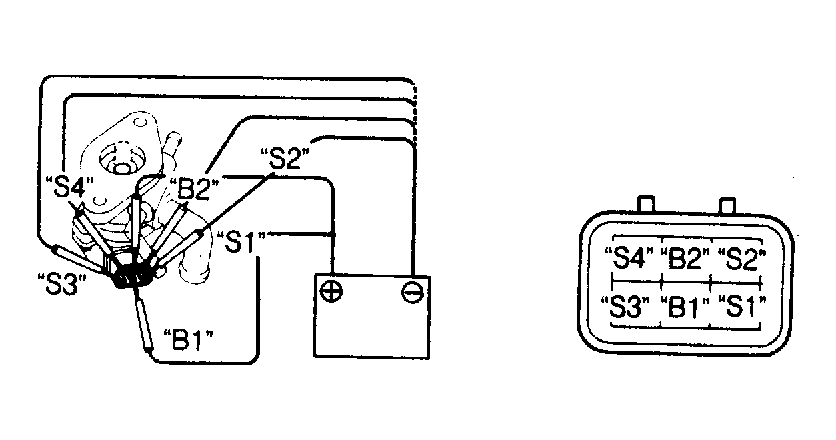 3. To check valve operation, apply battery voltage to terminal "B1" and terminal "B2". See Figure. Repeatedly ground terminals "S1", "S2", "S", "S4" and "S1" in sequence. Note that valve closes. See Fig 1 through Fig 3 .