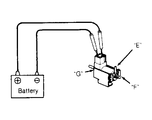 Connect battery to VSV terminals. Blow into port "E". See Fig 1. Air should flow from port "F". Disconnect battery. Blow into port "E". Air should flow from port "G". Replace valve if defective.