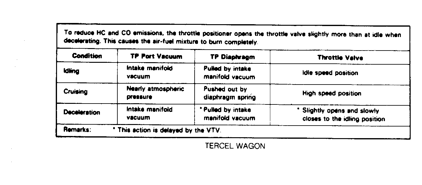 Home >> Toyota >> 1988 >> Tercel SR5 >> Repair and Diagnosis (Single Page) >> Engine Performance >> System >> Throttle Positioner System >> System Testing >> Throttle Positioner (TP) System >> Corolla FX & Tercel Sedan