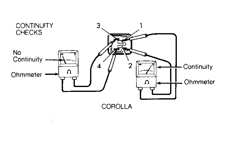 1. Check that continunity is present between terminals No. 1 and 2. No continuity should be present between terminals No. 3 and 4.