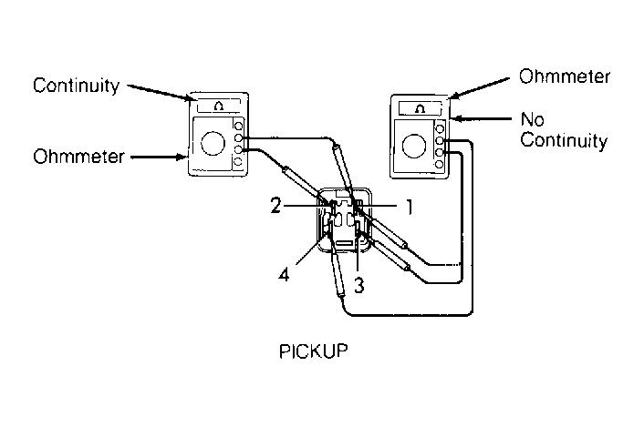 2. On Pickup, also check that there is no continuity between terminals No. 1 and 4. See Fig 3 & 44. On all models, apply battery voltage to terminals No. 1 and 2. See Fig 1, Figure, Figure or Figure.