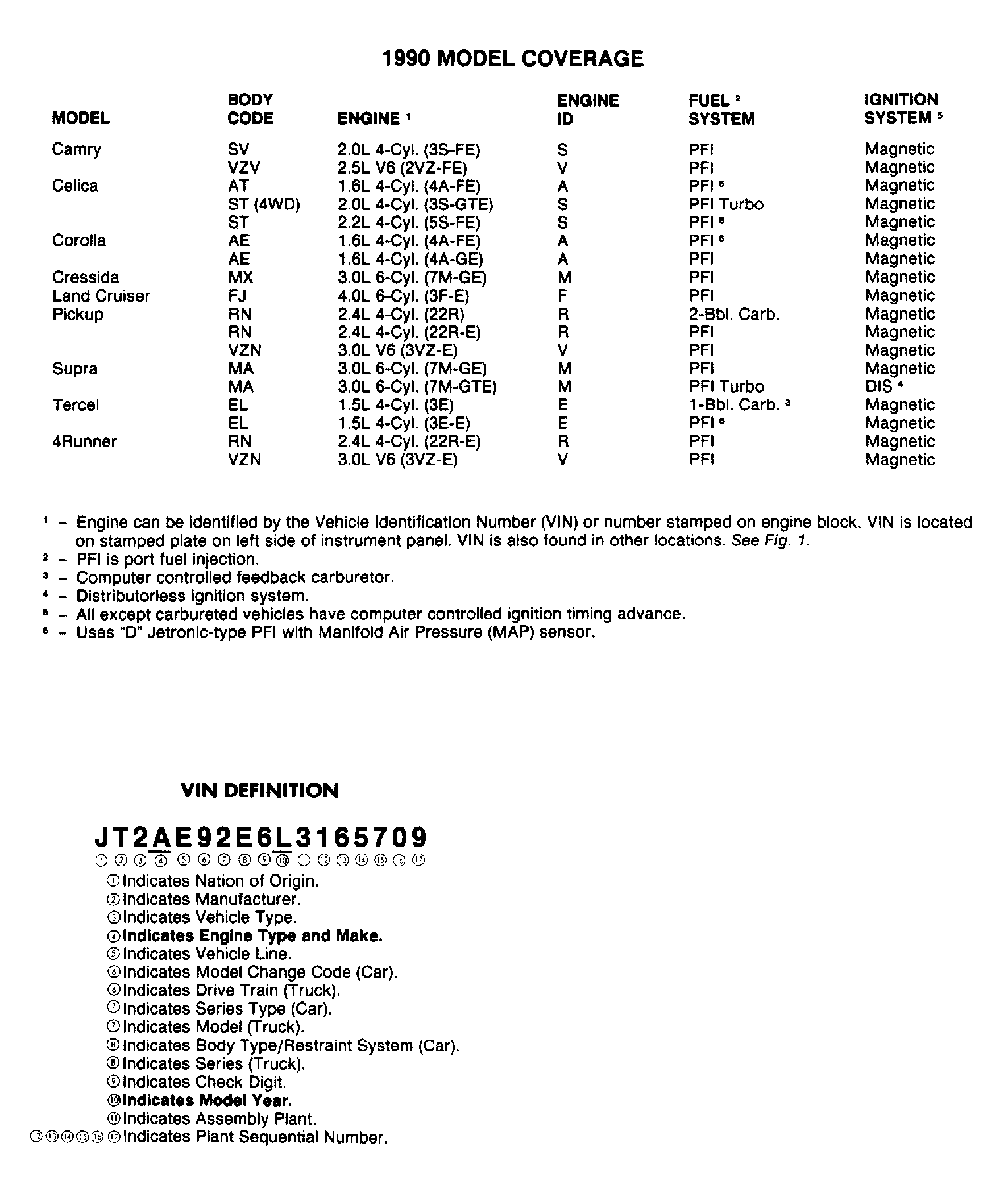 Home >> Toyota >> 1989 >> Tercel EZ >> Repair and Diagnosis >> Engine Performance >> Application >> Engine/VIN Id >> Identification >> Model Coverage