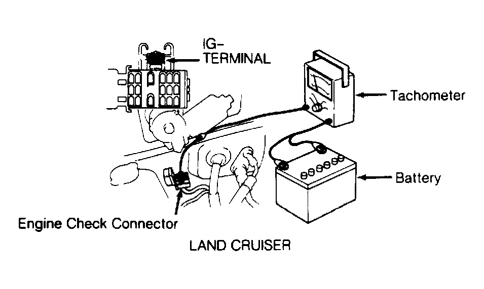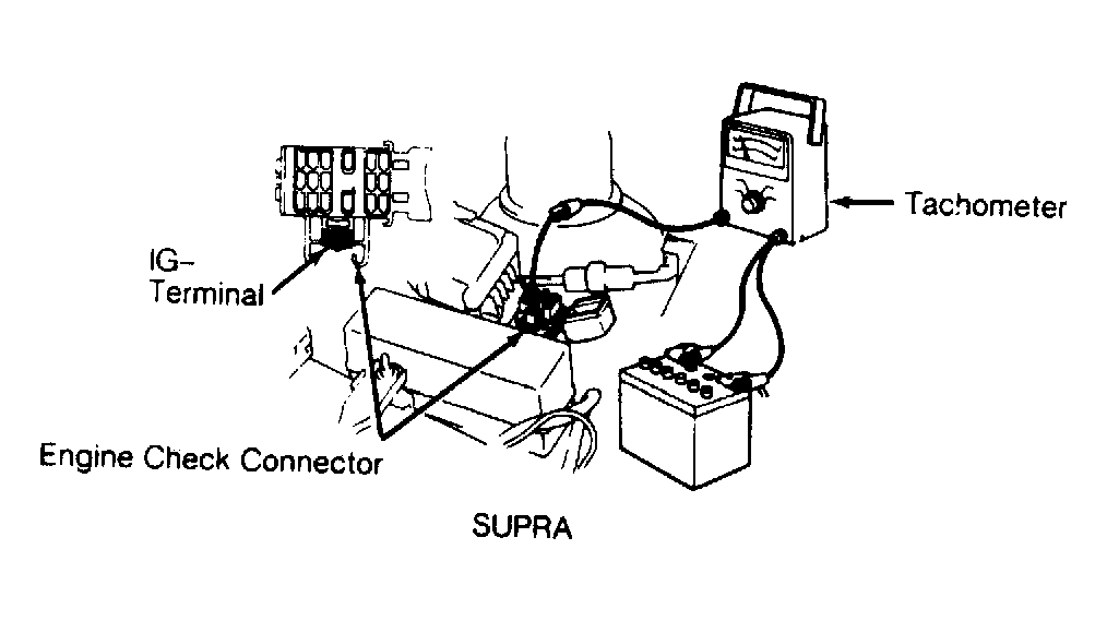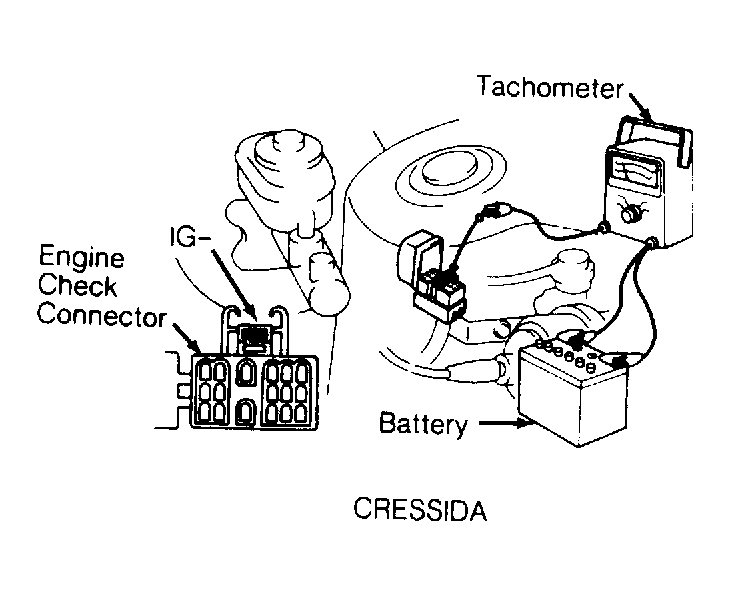- Ensure engine is at normal operating temperature. Connect timing light to engine. Connect tachometer to proper location. See Fig 1, Fig 2 and Fig 3.