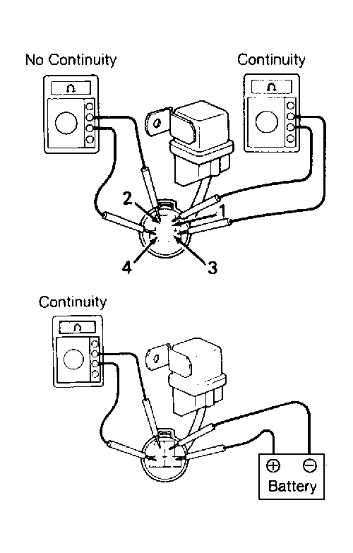 To test EFI main relay, See Fig 1. Relay is located on right front fenderwell. See Figure. Replace relay if defective.