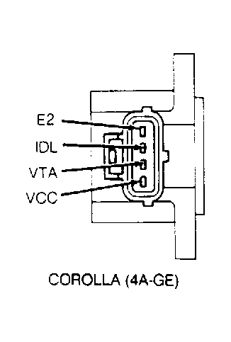 Fig 1: TPS Sensor Connector Terminal ID (4A-FE)