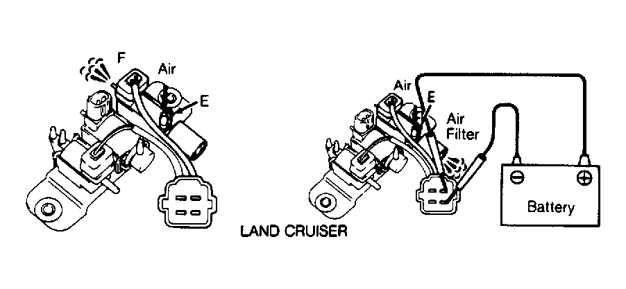- Vacuum switching valve is located on left fender (rear most vacuum switching valve). Check operation of vacuum switching valve using Fig 1 as a reference.