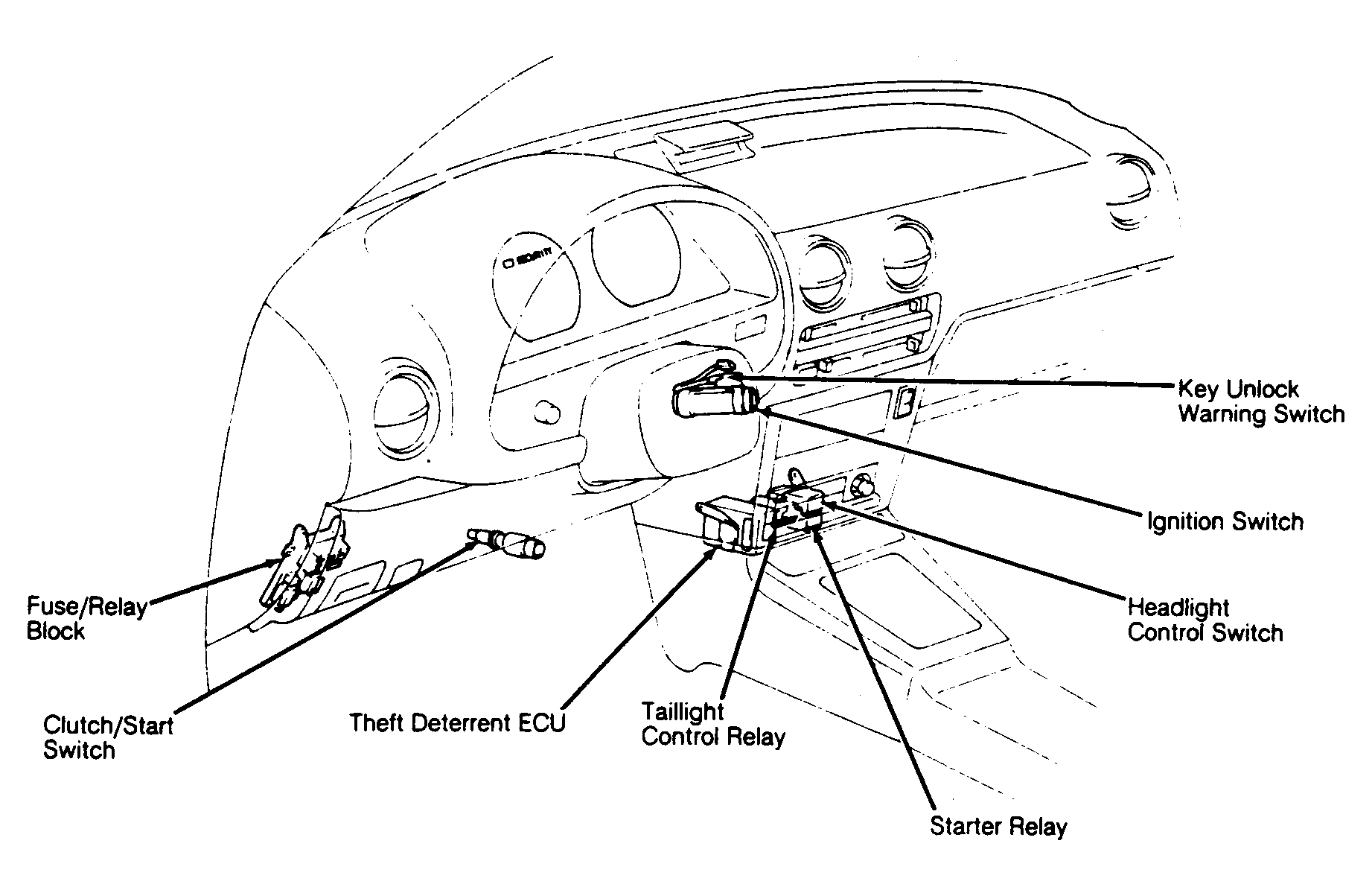 Behind left kick panel. See Figure. |