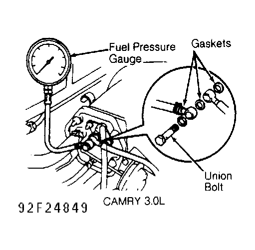 Fig 1: Installing Fuel Pressure Gauge (Camry 3.0L)