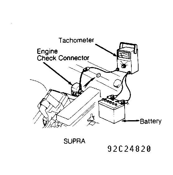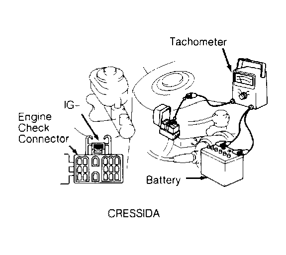 - Warm engine to normal operating temperature. Shut engine off. Connect timing light. Connect tachometer to proper terminals of engine check connector. See Fig 1-Fig 3