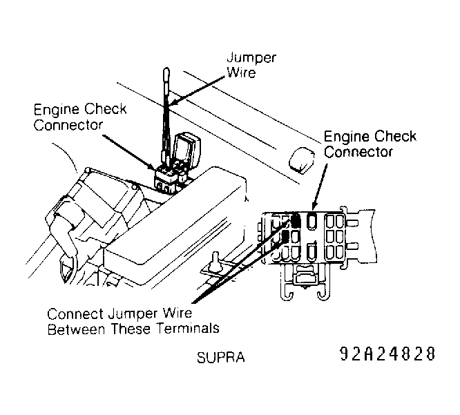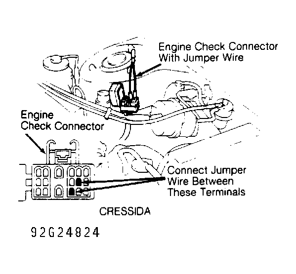 - Install jumper wire between proper terminals of engine check connector. See Fig 4-Fig 6