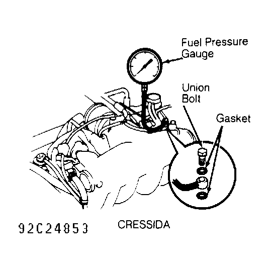 - Disconnect negative battery cable. Remove fuel pressure gauge. Reinstall union bolt using NEW gaskets. Tighten union bolt. Install cold start injector electrical connector (if equipped). Install negative battery cable.