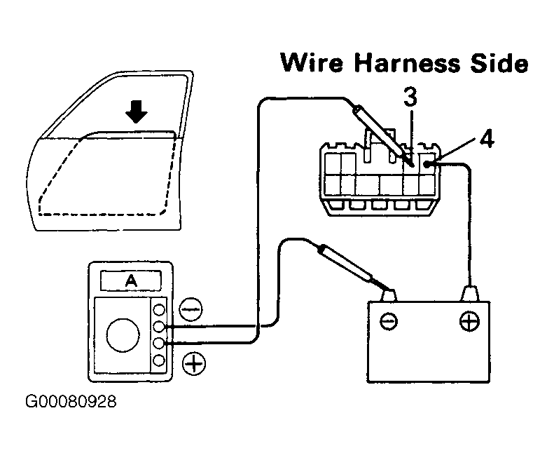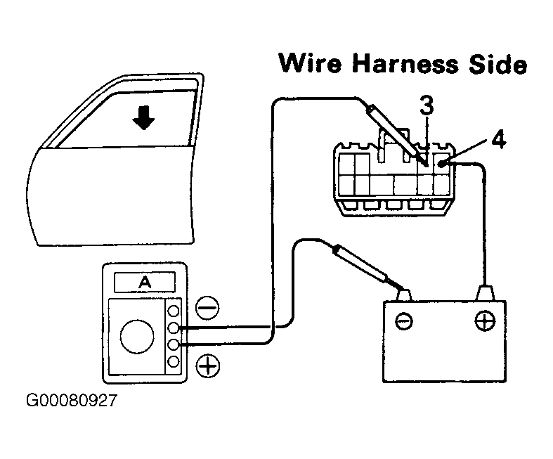 - Check that the current increases approximately 14.5 amps or more when the window stops going down. If operation is as specified, replace the master switch.