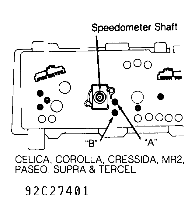 - Vehicle speed sensor is located on rear of combination meter in instrument cluster. Connect ohmmeter between terminals "A" and "B". Terminals are located near vehicle speed sensor. See Fig 1.
