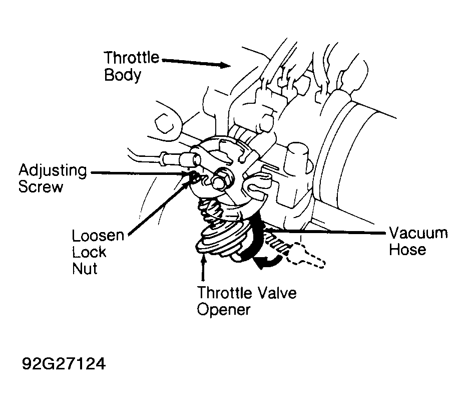 - Engine must be at normal operating temperature. Ensure idle speed is correct. Disconnect vacuum hose from throttle valve opener and plug hose. See Fig 1. Raise engine speed to 2500 RPM.