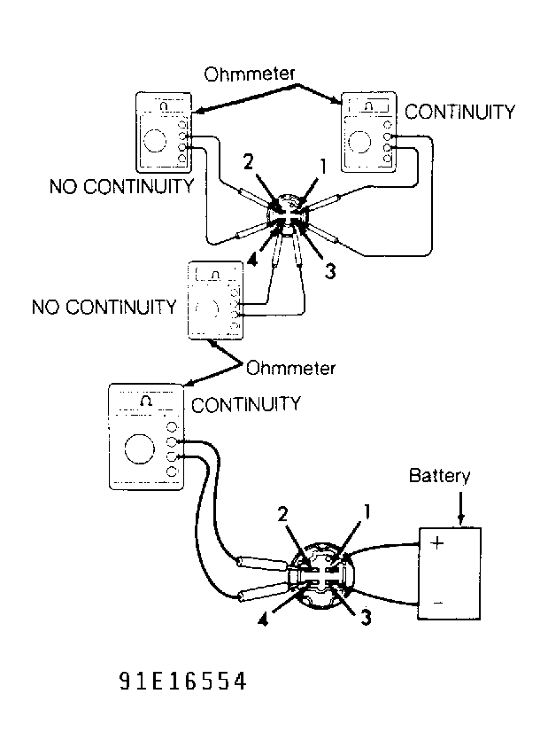 2. Check EFI main relay operation by applying battery voltage and checking continuity between specified terminals. See Fig 1. Replace EFI main relay if defective.