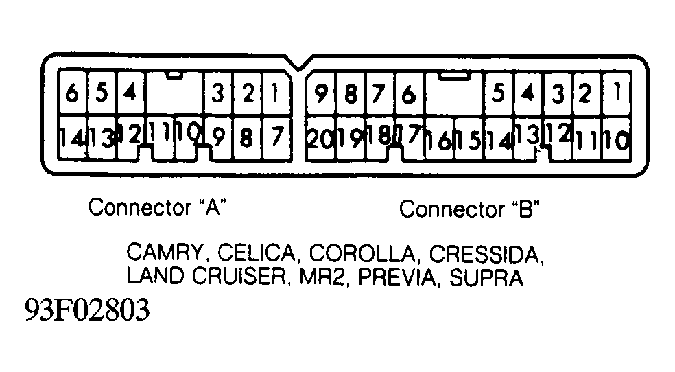 Fig 1: Combination Switch Connector ID For Wipers (Camry, Celica, Corolla, Cressida, Land Cruiser, MR2, Previa, Supra)