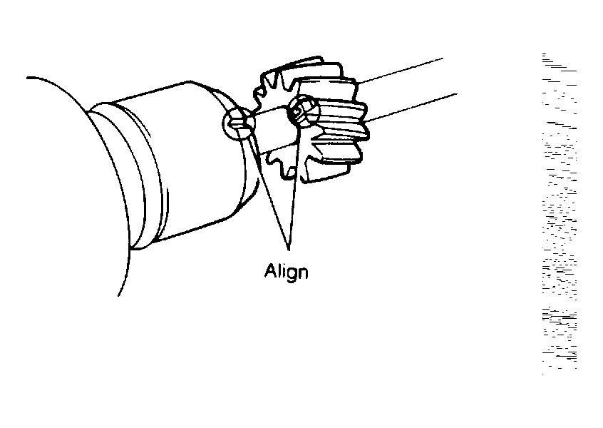 - Coat new "O" ring with oil and install onto distributor housing. Install distributor by aligning groove on distributor housing with protrusion on top of drive gear teeth. See Fig 2. When distributor is fully seated into engine, rotor should be at about 11 o'clock position. See Fig 1.