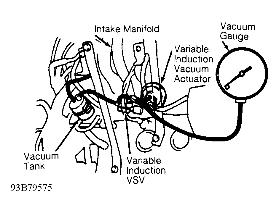 - Warm engine to normal operating temperature. Shut engine off. Using vacuum "T", install vacuum gauge in vacuum line between variable induction Vacuum Switching Valve (VSV) and variable induction vacuum actuator. Variable induction VSV is located below intake manifold, near cylinder block. See Fig 1.NOTE: Variable induction VSV may also be referred to as the T-VIS VSV.