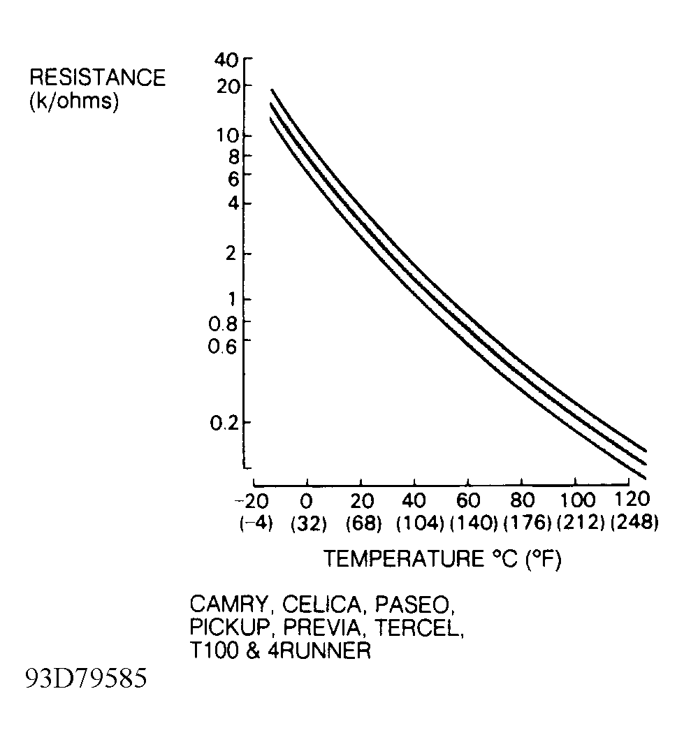 Home >> Toyota >> 1993 >> Tercel Base >> Repair and Diagnosis (Single Page) >> Engine Performance >> Sensor Range Charts >> Engine Controls - Sensor Operating Range Charts >> Sensor Operating Specifications >> Coolant Temperature Sensor
