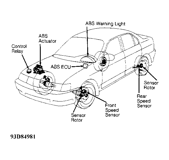- Remove ABS control relay. See Figure. Continuity should exist between terminals No. 9 and 10. Continuity should not exist between terminals No. 7 and 8. See Fig 1.