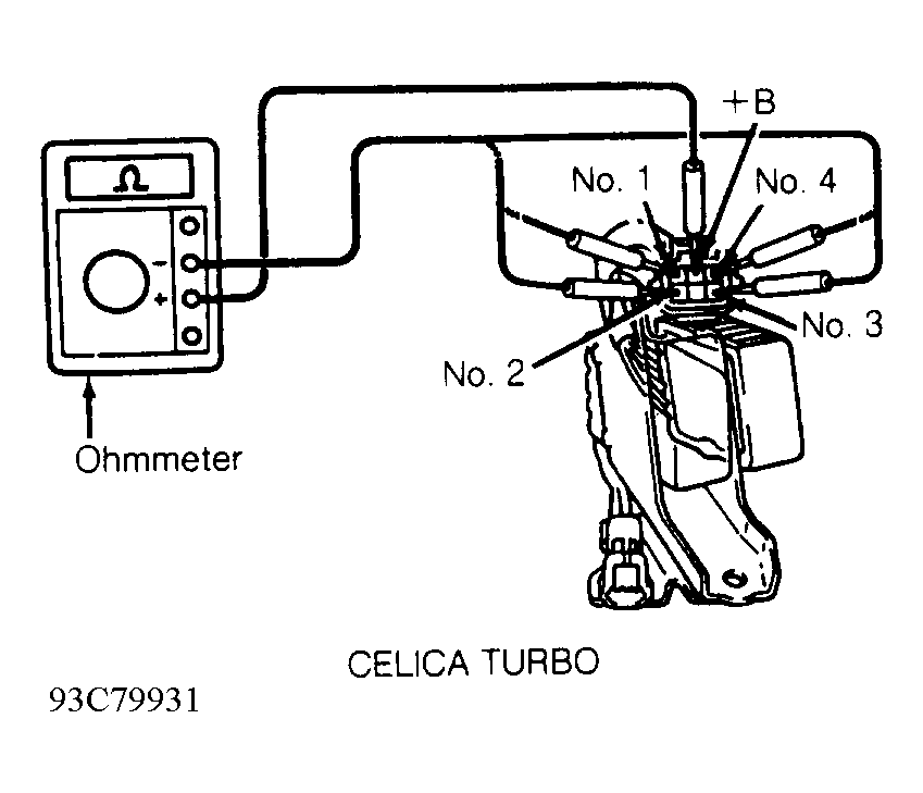 - Using ohmmeter, measure resistance between terminal +B and other fuel injector solenoid resistor electrical terminals. See Fig 1. Replace fuel injector solenoid resistor if resistance is not within specification. See FUEL INJECTOR SOLENOID RESISTOR SPECIFICATIONS table.