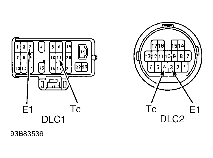 - Locate DLC1. Connect voltmeter positive lead to terminal No. Tc and negative lead to terminal E1. See Figure. Turn ignition on and ensure battery voltage exists between terminals of each DLC. If voltage is as specified, go to test for next trouble code displayed or appropriate TROUBLE SHOOTING BY SYMPTOM .