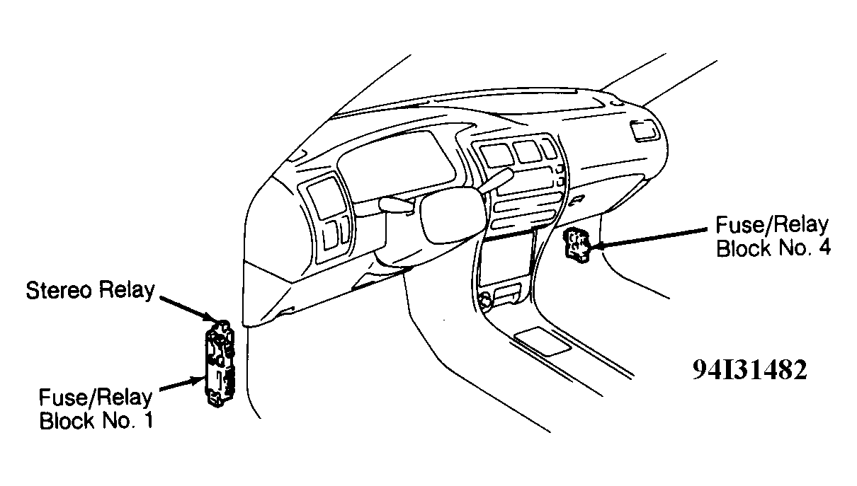 Fuse/Relay Block No. 4 Behind right kick panel. See Figure & Figure .