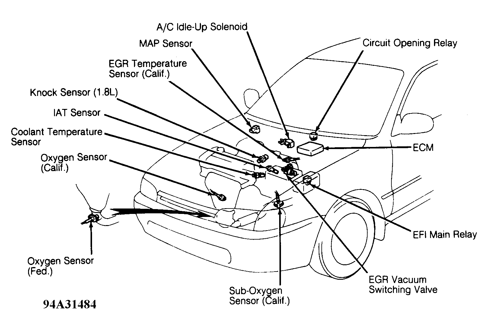 | ECM (Engine Control Module) | Under center of dash, behind center of console. See Figure & Figure . |