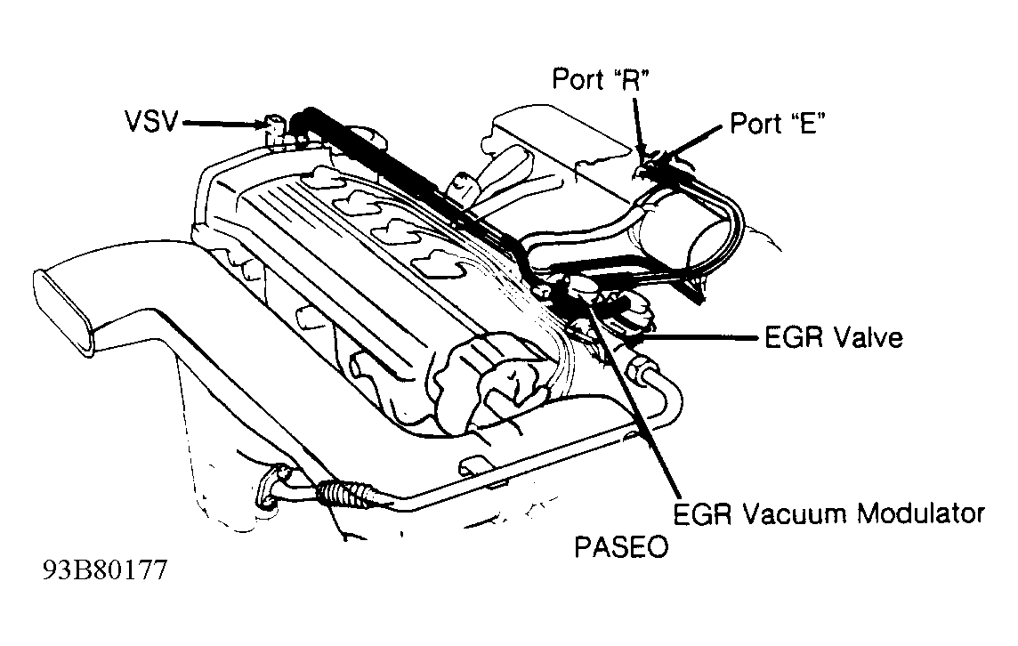Home >> Toyota >> 1994 >> Paseo Automatic >> Repair and Diagnosis >> Engine Performance >> System >> Engine Controls - System/Component Tests >> Emission Systems & Sub-Systems >> Exhaust Gas RECIRCULATION (EGR) System Test
