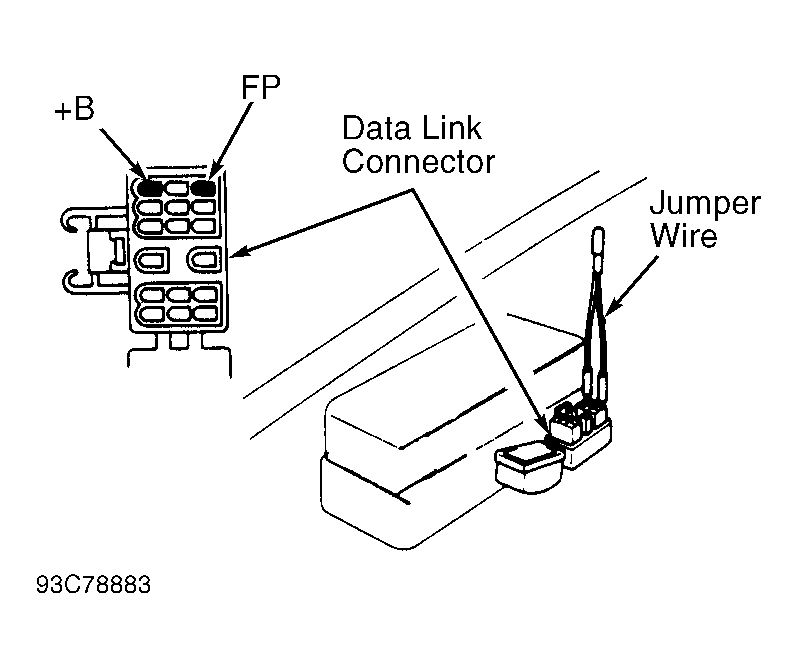 1. Install Jumper Wire (SST 09843-18020) between +B and FP terminals of data link connector. See Fig 1. Data link connector is located in engine compartment.