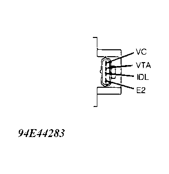 - Disconnect electrical connector from Throttle Position Sensor (TPS). Loosen TPS mounting screws. Connect ohmmeter between terminals IDL and E2. See Fig 1 and Fig 2.