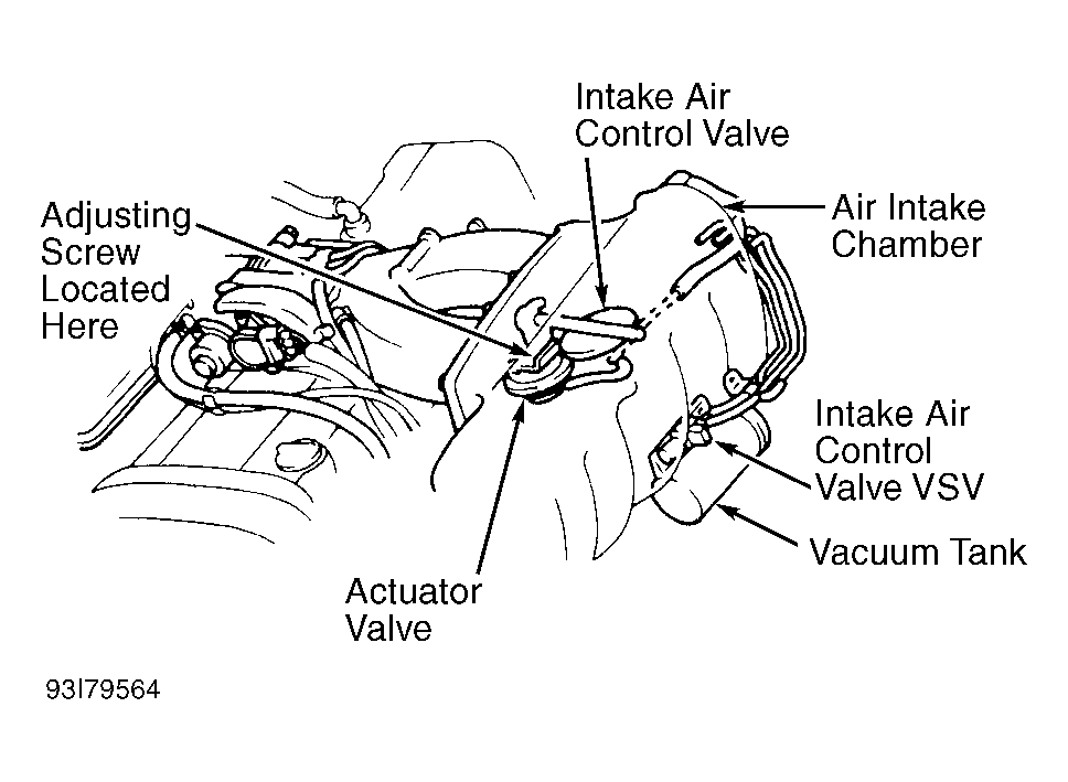 - Disconnect negative battery cable. Disconnect electrical connector from intake air control valve Vacuum Switching Valve (VSV), located near vacuum tank. See Fig 2. It may be necessary to remove vacuum tank for access to VSV.