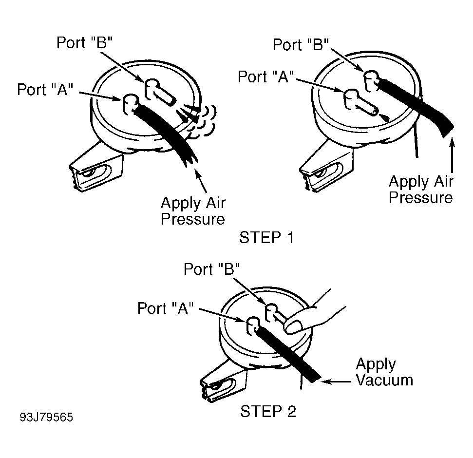 - Apply air pressure to port "B" and ensure air passes out filter. Perform STEP 1. See Fig 1. Connect battery voltage and ground to VSV terminals. Apply air pressure to port "B" and ensure air passes out port "A". Perform STEP 2. See Fig 1. Replace VSV if defective. Reconnect negative battery cable. Recheck system operation.