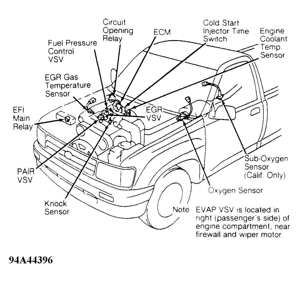 Fig 2: Locating TCCS Components (T100 3.0L)