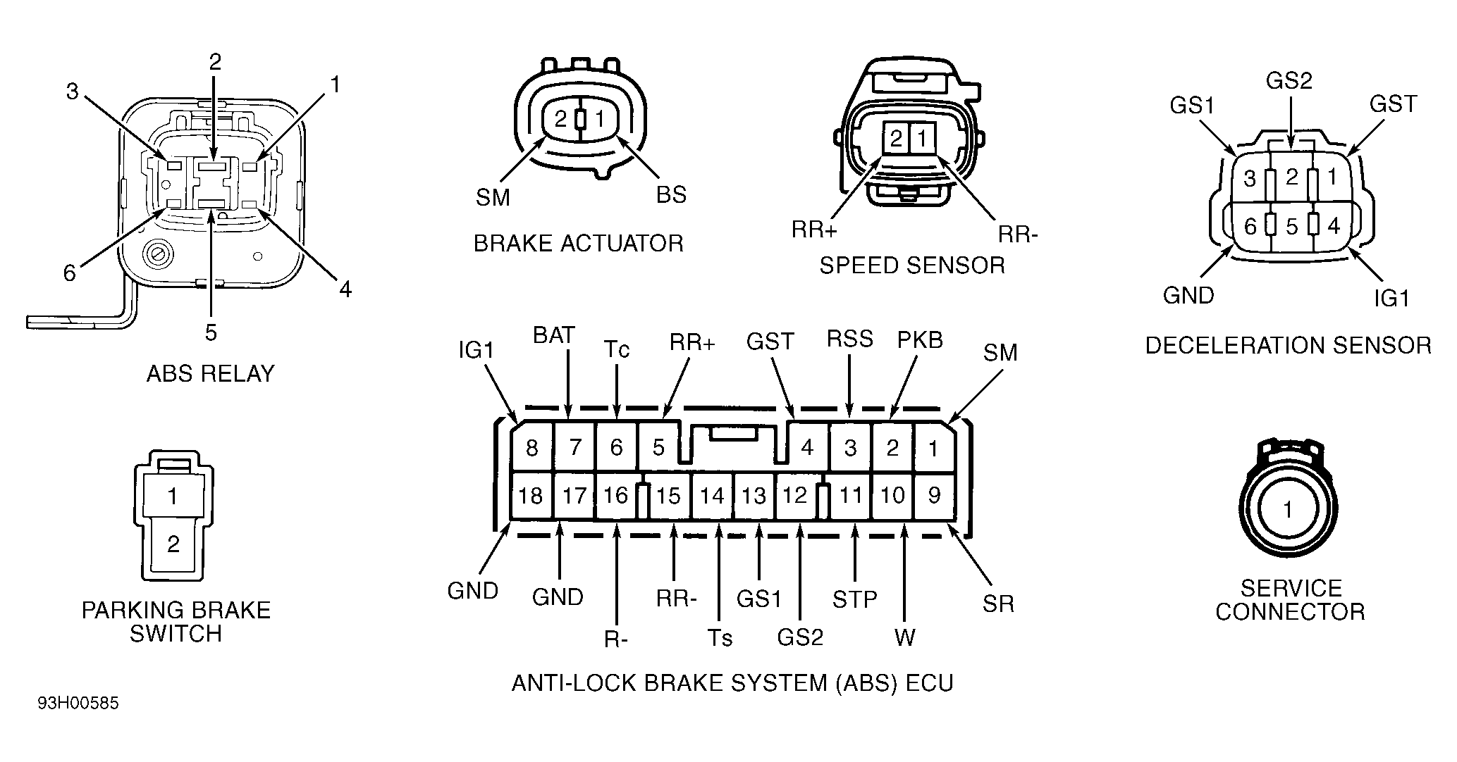 1. Unplug ABS relay connector. See Figure. Using ohmmeter capable of testing diodes, check for continuity between ABS relay terminals No. 1 and 6. See Figure. Continuity should exist.