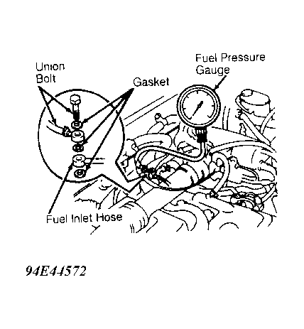 - Disconnect negative battery cable. Remove fuel pressure gauge. Reinstall union bolt using NEW gaskets. Tighten union bolt. Install cold start injector electrical connector (if equipped). Install negative battery cable.