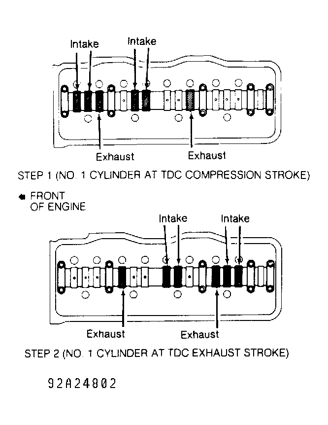 - Rotate crankshaft 360 degrees, and realign pulley groove with "0" mark on timing belt cover. This will place cylinder No. 1 at TDC of exhaust stroke. Check valve clearance on remaining valves. Perform STEP 2. See Fig 1. Adjust valve clearance if necessary. Shim thickness can also be determined by using the following formula: N = T + A.