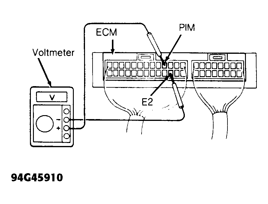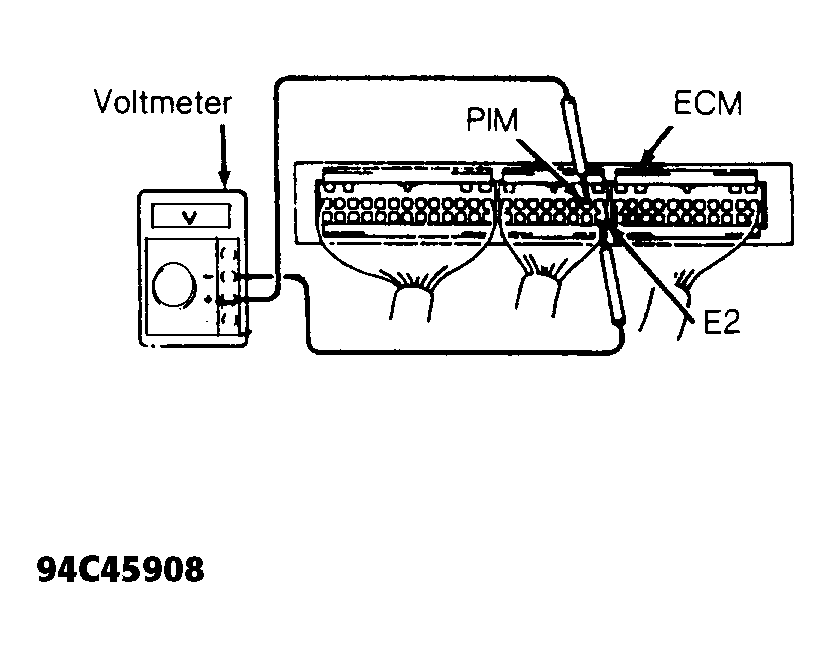 - To check MAP sensor output voltage, turn ignition on. Disconnect MAP sensor vacuum hose from intake manifold. Connect voltmeter to terminals PIM and E2 of Engine Control Module (ECM). See Fig 2 and Fig 3. See ECM LOCATION table.ECM LOCATION