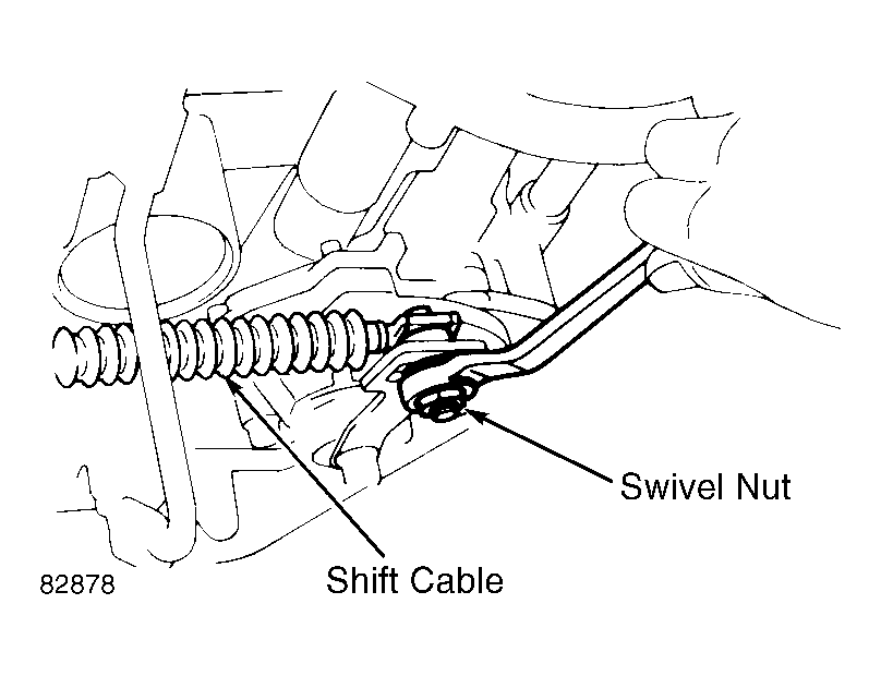 - Loosen swivel nut on manual shift lever. Push manual shift lever fully toward right side of vehicle.