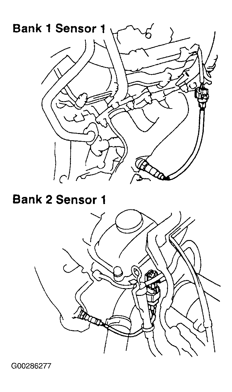 NOTE: Oxygen sensor located nearest radiator is referred to as left oxygen sensor. See Figure.