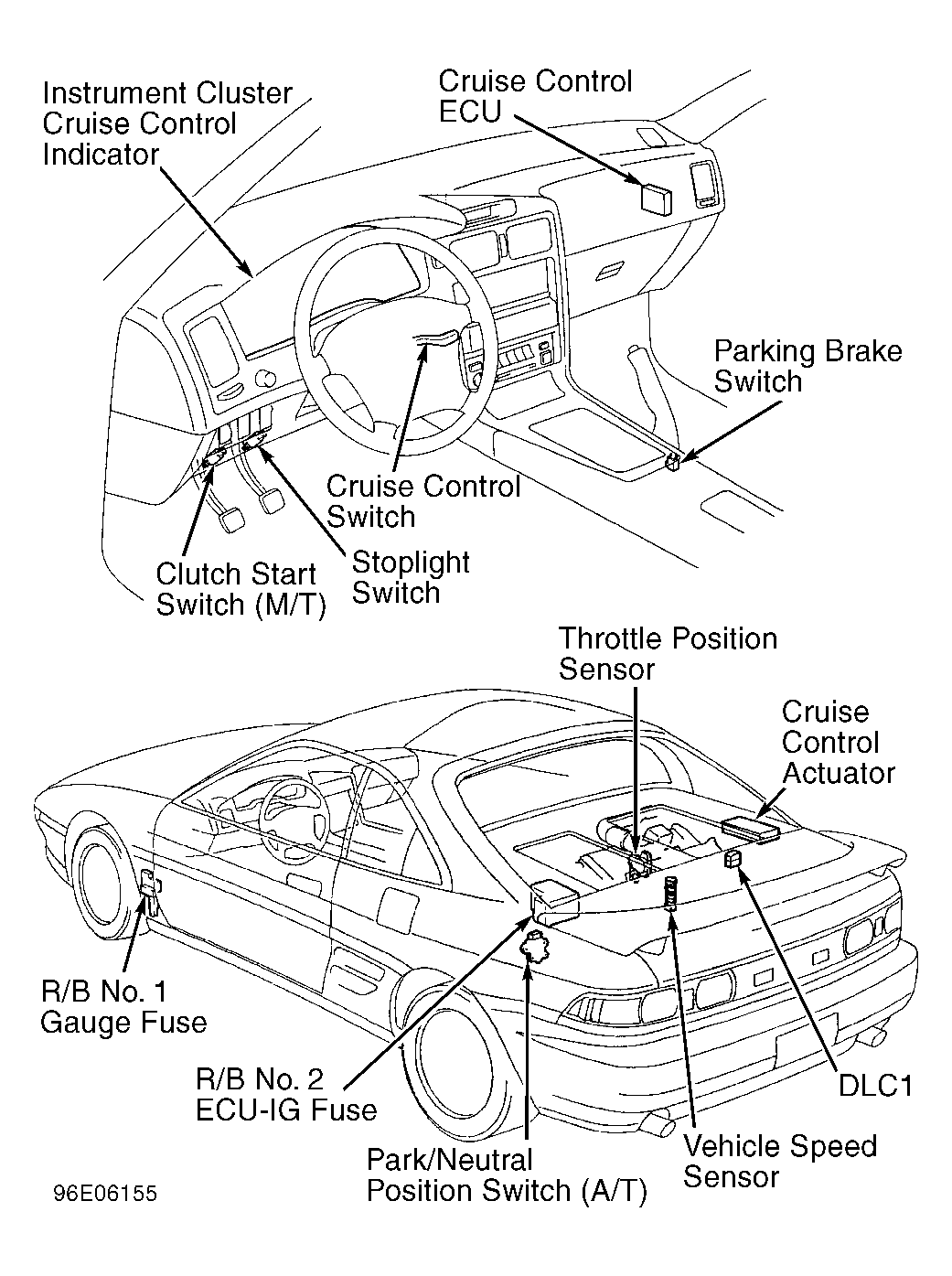 - With cruise control switch off, check for continuity between ground and terminal CC ECU connector terminal No. 18 (Green/Black wire). If continuity does not exist, go to next step. If continuity exists, locate and repair short in wiring harness between CC ECU connector and cruise control switch.