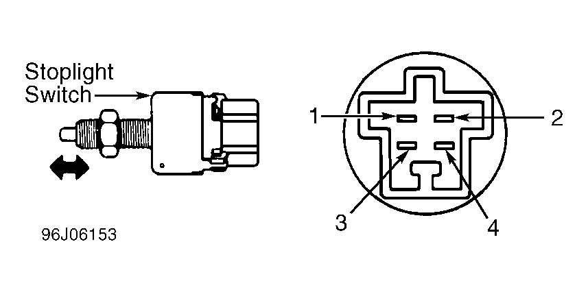 Disconnect stoplight switch connector. Check for continuity between stoplight switch terminals. See TESTING STOPLIGHT SWITCH table. See Fig 1. If continuity is not as specified, replace stoplight switch.