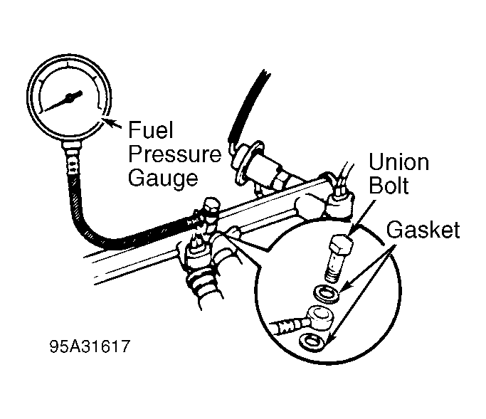 - Disconnect negative battery cable. Remove fuel pressure gauge. Reinstall union bolt using NEW gaskets. Tighten union bolt. Install negative battery cable.