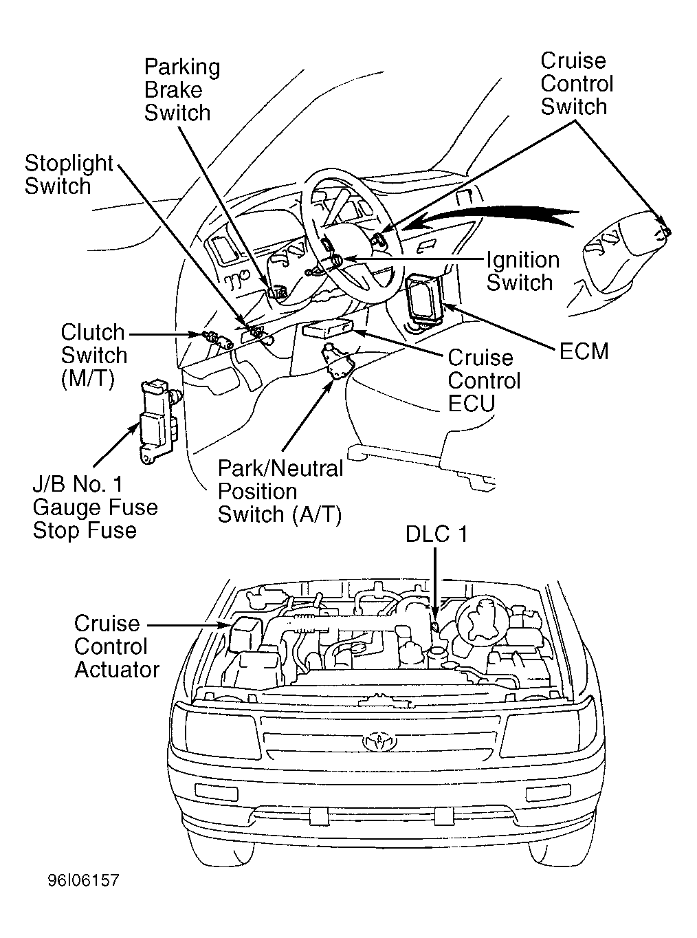 - Turn ignition off. Check cruise control switch. See CRUISE CONTROL SWITCH TEST under COMPONENT TESTING. Replace cruise control switch as necessary and recheck system operation. If switch is okay, go to next step.