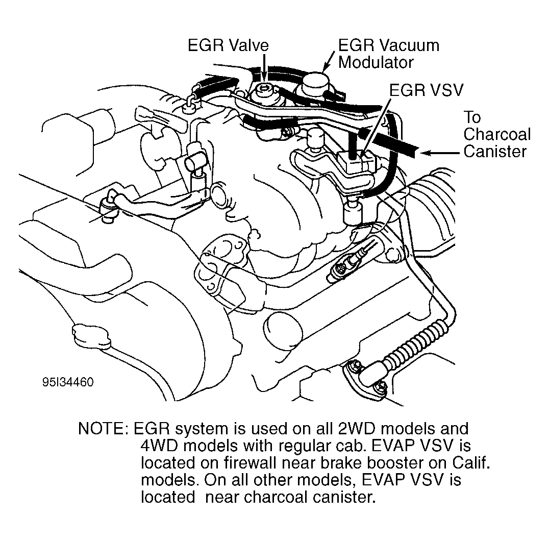 EGR systems contain different components depending on application. See Figure. When testing EGR system and components, use proper illustration to determine component location.